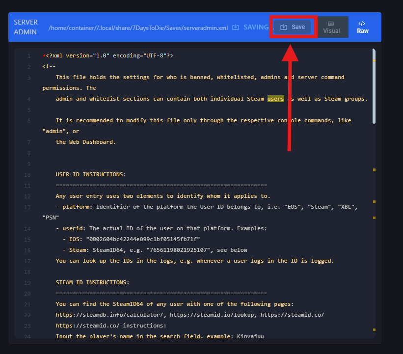 serveradmin.xml FileOpen the ChipHead Panel and Stop your server.