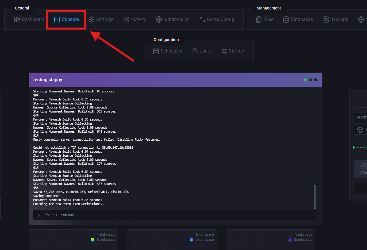 The console will display a confirmation once the command has been accepted.