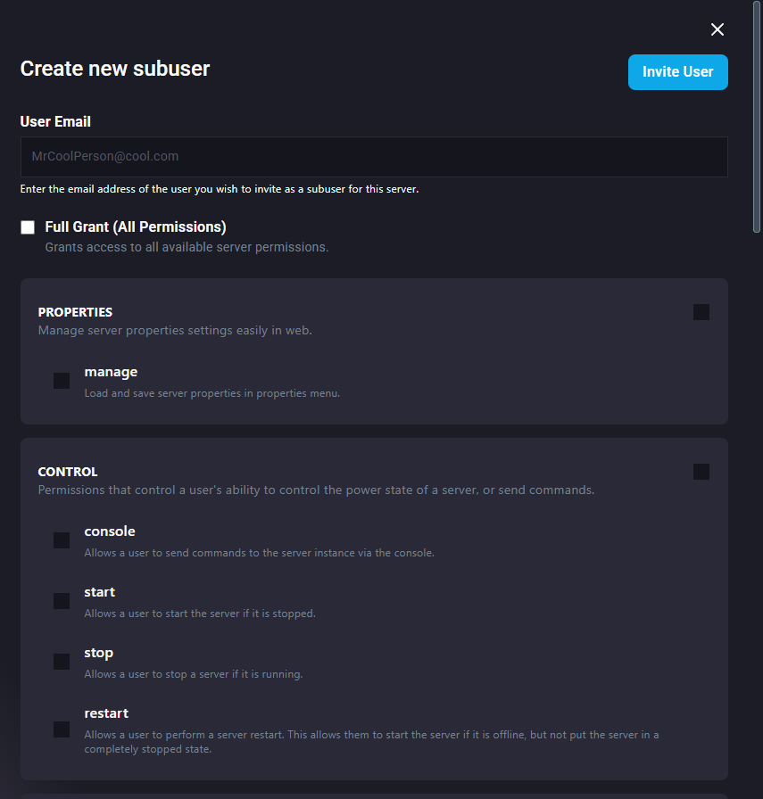 With the ChipHead panel, you can create and customize user for your friends or staff. This gives them the access they need to help manage your server, while keeping sensitive controls restricted ensuring both security and teamwork.