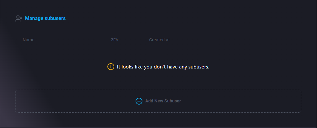 Select "Add New Subuser"