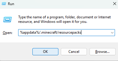 Type %appdata%/.minecraft/resourcepacks and press OK.