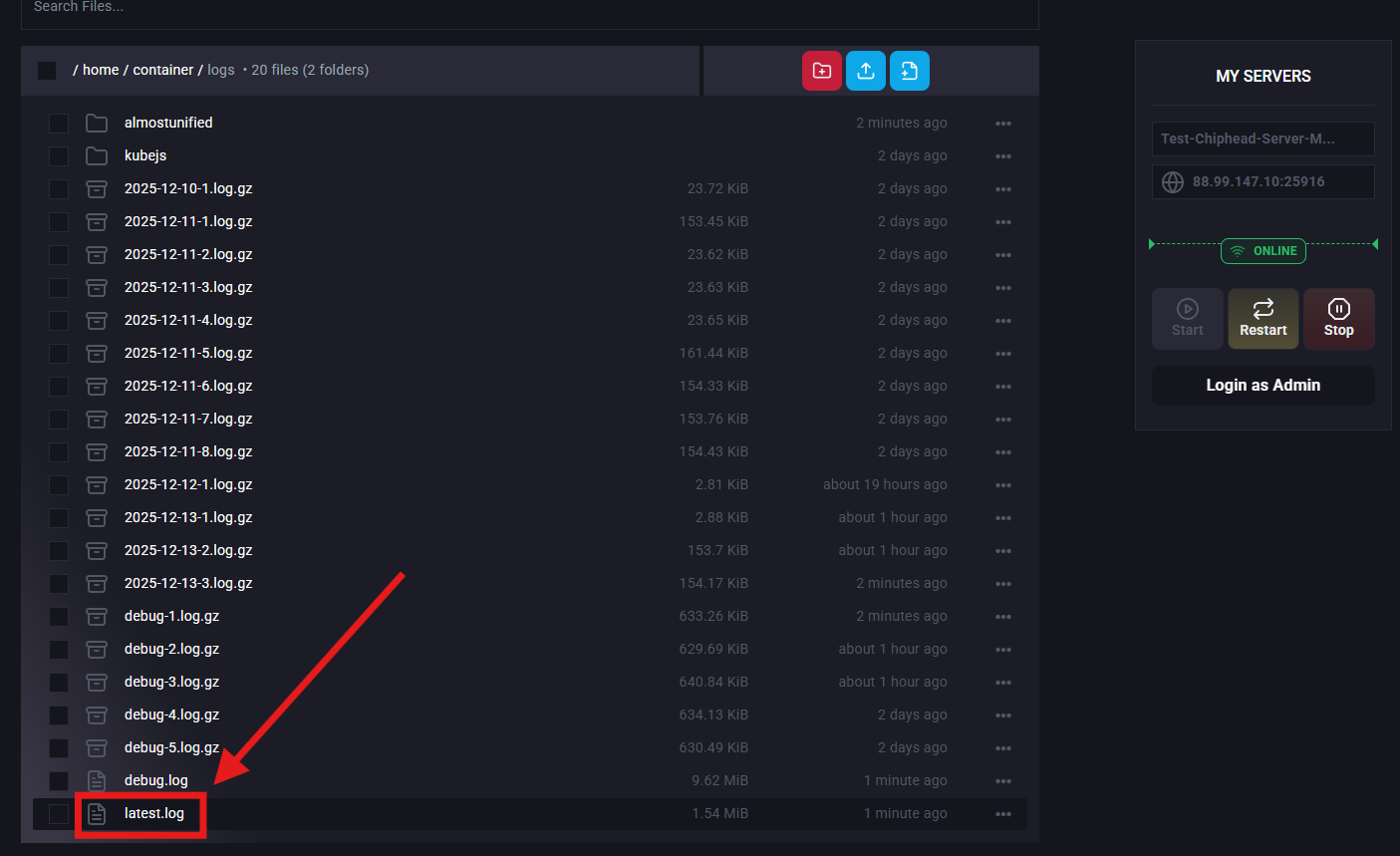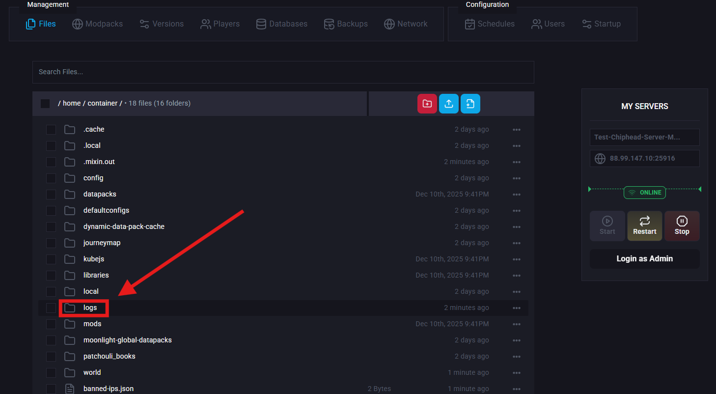 If you want to know how to read sever logs, check out our guide on How to Read Server Logs: [here].Log in to the ChipHead Panel.